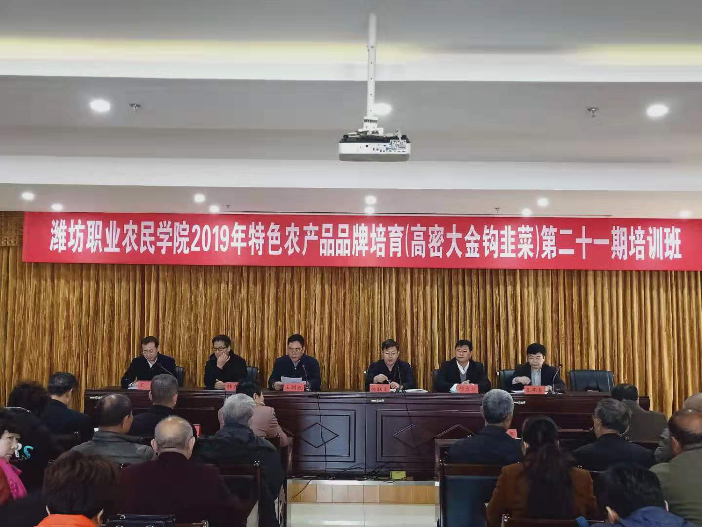 11月22日,由潍坊职业农民学院主办,高密市农业农村局、高密市夏庄镇人民政府、山东省轻工农副原料研究所、潍坊天元地泰企业管理咨询有限公司协办的潍坊职业农民学院2019年特色农产品品牌培育(高密大金钩韭菜)第二十一期培训班圆满结束。来自高密市夏庄镇、东北乡文化发展区、柏成镇、胶河生态发展区等乡镇的从事韭菜种植的种植户、农业专业合作社以及农业技术人员共计150余人参加了培训。