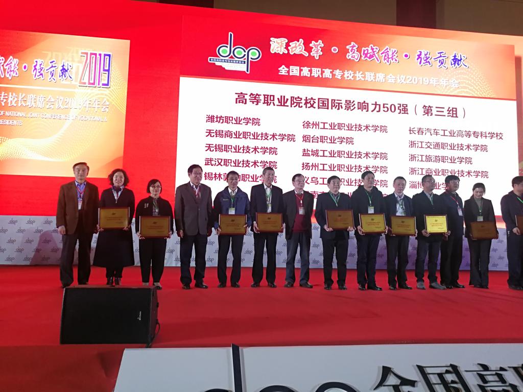 11月22日至23日,全国高职高专校长联席会议2019年年会在重庆召开。beat365作为高等职业教育国际影响力50强院校荣获表彰,“十年磨砺援外路 教育输出结硕果”案例获评高等职业教育改革发展成果展优秀案例,是获表彰的20个优秀案例之一。本次年会共报送70个职业教育发展成就案例和306个职业教育改革成果案例,择优推荐249个案例进行了现场展示。