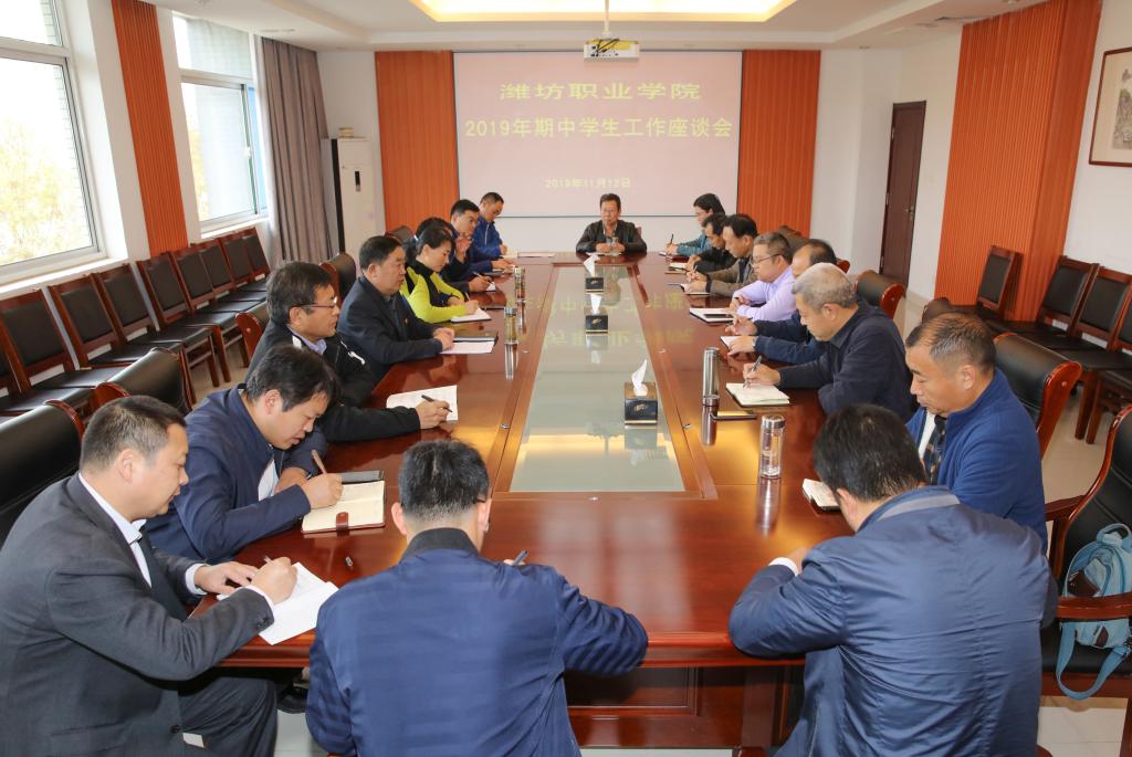 11月12日下午,学院在滨海校区清泽楼222会议室召开2019年期中学生工作座谈会,党委副书记宋桂言主持会议并讲话,团委学生处副科级以上干部、各二级学院分管学生负责人参加会议。