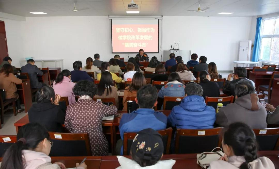 根据学院主题教育统一安排,11月8日,学院党委副书记、院长王家爱在奎文校区讲“坚守初心、担当作为,做学院改革发展的‘最美奋斗者’”党课。学院领导宋桂言、赵君堂、贺志强、李瑞昌、郭晓辉、刘德强分别给所联系党支部讲“不忘初心、牢记使命”专题教育党课。