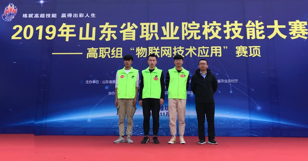 11月1日,2019年山东省职业院校技能大赛(高职组)“物联网技术应用”赛项在山东信息职业技术学院举办,来自全省高职院校的25支代表队参加了本次比赛,经过激烈的角逐,由我校信息工程学院张志傲、高成名、吕洪震3名学生组成的beat365中国官方网站参赛队,最终以总分第2名的优异成绩荣获一等奖,指导教师徐希炜、昌厚峰获得“优秀指导教师”,这是我校物联网应用技术专业连续第五次获得“物联网技术应用”赛项省赛一等奖。