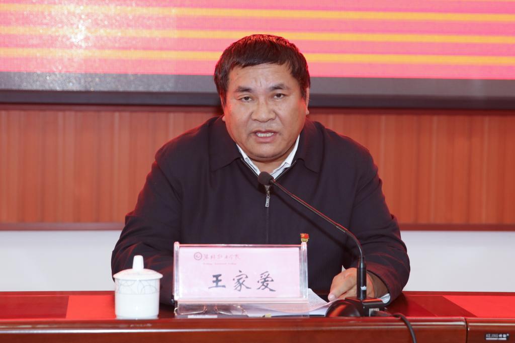 院长王家爱作动员讲话。他全面总结回顾了学院优质校的建设历程与主要成绩,客观分析了学院优质校建设过程中存在的问题与不足和面临的形势,对下一步具体工作进行了安排。一要进一步提高对优质校验收工作重要性的认识,作为当前头等大事抓紧抓实抓好。二要强化领导,明确思路,压实责任,积极推进优质校建设和验收准备各项工作。三要明确时间节点,细化任务分解,做好进度安排,确保各项工作落实落细。四要在全面创优基础上突出重点,打造特色和亮点,采取多种形式做好宣传,扩大影响面,综合发力,争取验收取得优异成绩。(周庆利供稿)