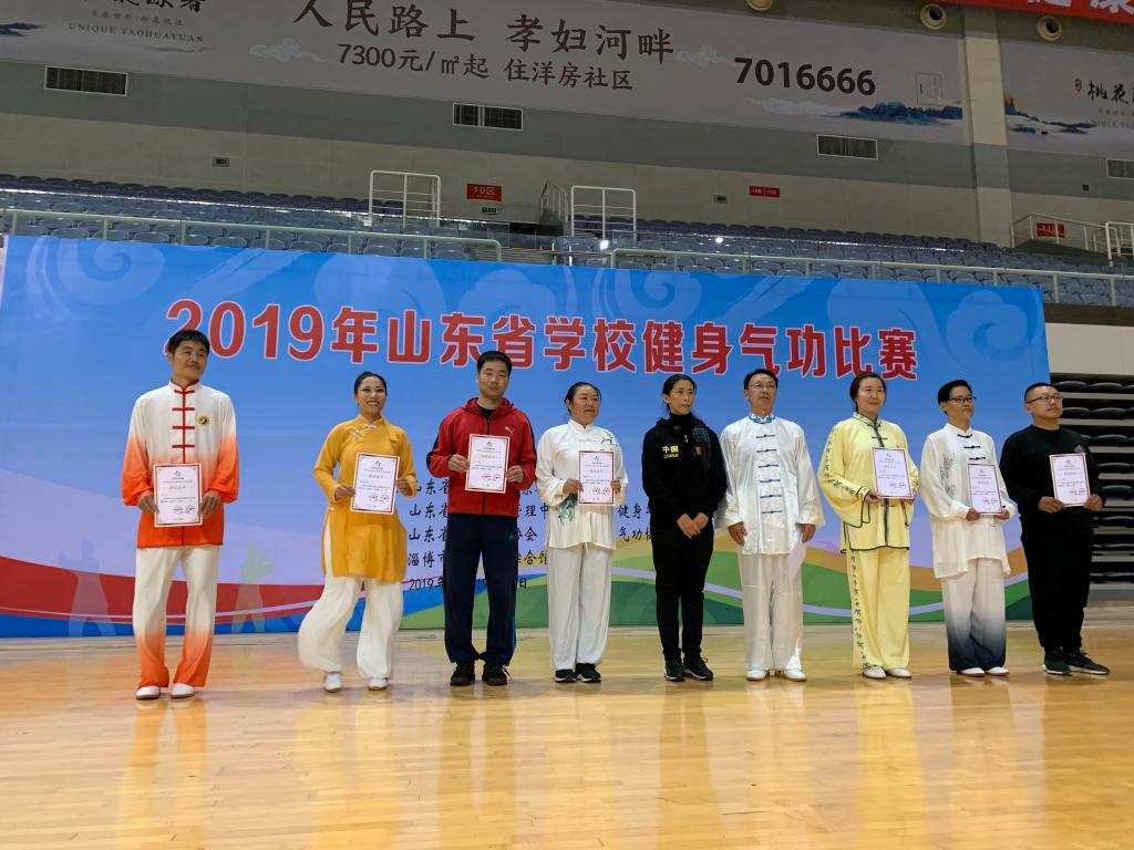 10月19日-20日,由山东省体育局、山东省教育厅主办的山东省学校健身气功比赛在淄博举行,来自全省43支学校代表队300余名运动员参赛。beat365田托老师获得教师组个人项目第3名,冯磊、张国强、宋雨璇等6名学生获得学生组集体项目二等奖和三等奖的好成绩。