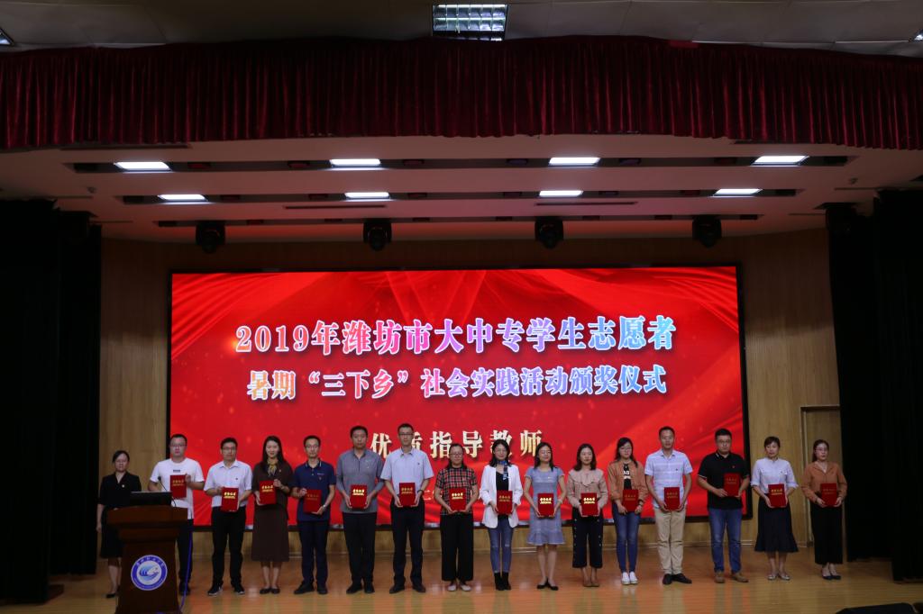 9月29日下午,由共青团潍坊市委、潍坊市学生联合会主办、beat365承办的2019年潍坊市大中专学生志愿者暑期“三下乡”社会实践活动成果报告会在beat365奎文校区报告厅举行。共青团潍坊市委副书记张新明、共青团潍坊市委四级调研员、学少部长王海燕出席了此次报告会。潍坊市16所大中专院校团委书记、师生代表400余人参加了报告会。