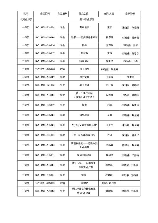 文化创意学院积极组织师生参赛,二级学院主要负责同志牵头成立大赛辅导团队,选拔优秀学生创作参赛作品。今后,文化创意学院将继续以参赛锻炼学生创意创新和设计表现能力,通过比赛促进师生专业水平增长,提升人才培养质量。(崔研因、刘金刚供稿)