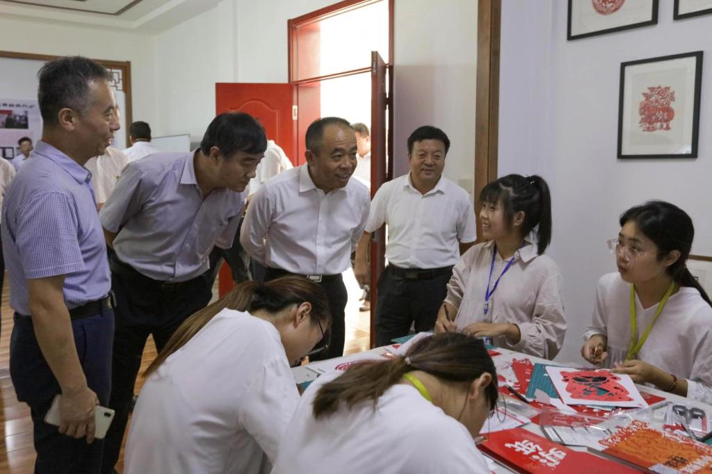 初宝杰一行实地参观了潍坊市大学生“互联网+”创业中心、留学生学习室、学院办学成果展、学生餐厅和潍坊职业农民学院办学成果。马跃启向初宝杰一行简要汇报了学院在党建工作、优质建设、人才培养、校企合作、职业技能大赛、创新创业等方面的情况。