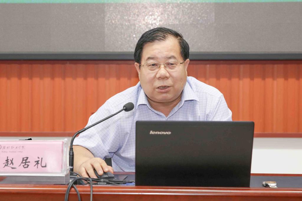 2019年暑期领导干部读书班期间,优质校建设大讲坛第十三讲在滨海校区清泽楼报告厅举行,学院邀请西安航空职业技术学院院长、全国黄炎培职业教育杰出校长赵居礼教授,为教职工做了“关于高职院校改革发展几个问题的思考”的报告。学院院长王家爱主持报告会,马跃启、宋桂言、赵君堂、贺志强、李瑞昌、郭晓辉、谭明、刘德强等学院领导出席报告会。副科级以上干部、骨干教师代表200余人参加报告会。