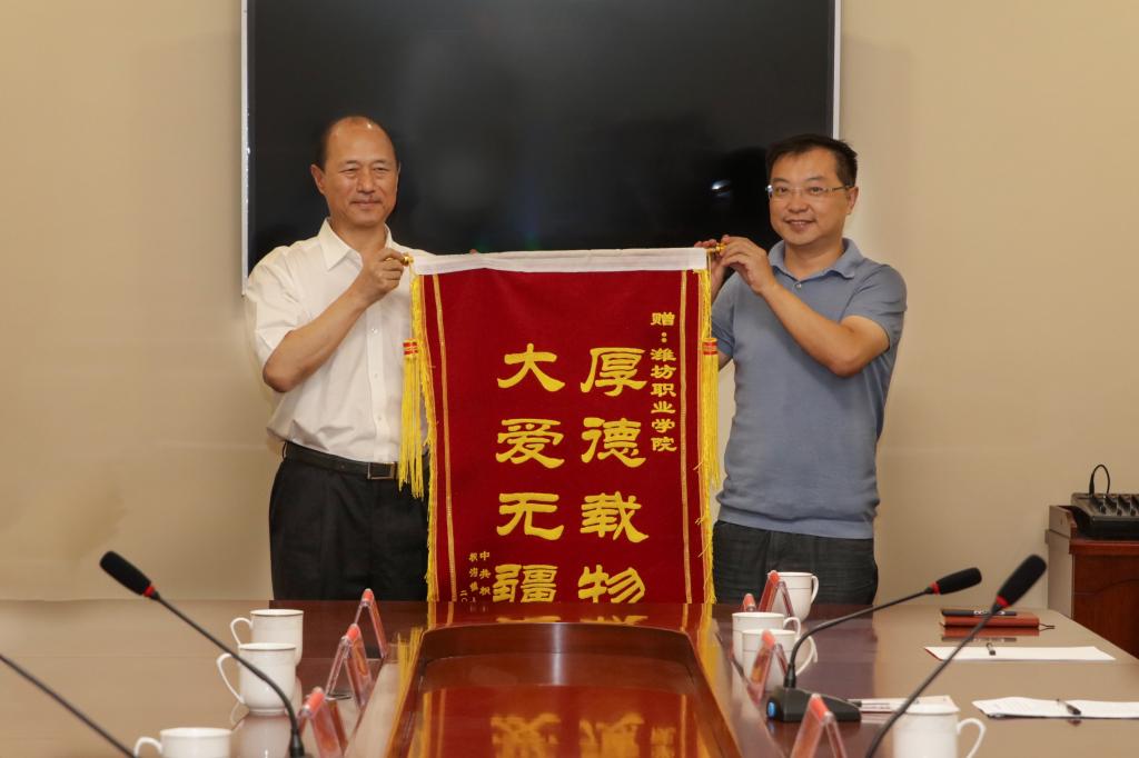 枳沟镇党委负责同志代表镇党委政府向beat365中国官方网站送上锦旗致谢。(张景伟供稿)