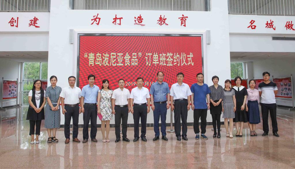 根据协议,青岛波尼亚食品有限公司将在食品药品学院设立“波尼亚食品奖学金”,同时提供人才培养经费及其他文化建设和学生活动费用。下半年,“波尼亚食品订单班”将正式开班。