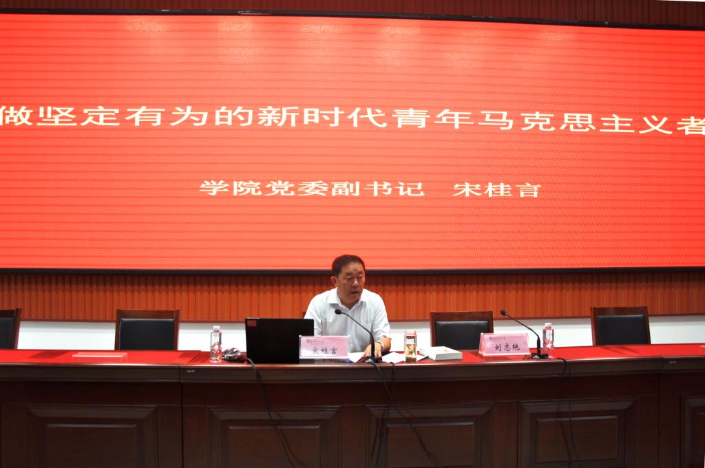在报告中,宋桂言结合学习习近平总书记在纪念五四运动100周年大会上的重要讲话精神,围绕“信仰”、“忠诚”、“学习”、“奋斗”四个关键词,要求同学们做新时代青年马克思主义者。要让信仰成为最明亮的人生灯塔,始终把好理想信念的“总开关”,扣好人生第一粒扣子。要让忠诚成为最可贵的政治品格,把对党信赖作为保持忠诚的基石。要让学习成为最持久的前行动力,把习近平新时代中国特色社会主义思想作为必修课,读原著、学原文、悟原理;把马克思主义经典著作作为基础课,用经典涵养正气、淬炼思想、升华境界。要让奋斗成为最靓丽的青春底色,讲务实,讲担当,讲奉献,以为人民谋幸福、为民族谋复兴为己任,把个人梦融入中国梦。报告中,他结合95岁的老兵张富清、“全国优秀党员”黄大年、“驻村第一书记”黄文秀等生动感人事迹,激励大家要以优异成绩回应新时代的召唤,为实现“两个一百年”目标、实现中华民族伟大复兴的中国梦谱写壮丽的青春之歌。