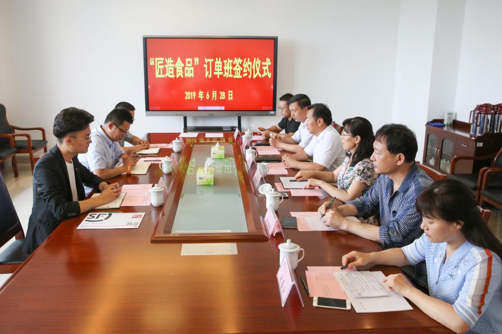 6月28日上午,beat365与山东匠造烘焙食品有限公司合作“匠造食品订单班”签约仪式在滨海校区清泽楼205举行。学院副院长贺志强出席会议,潍坊匠造速冻食品有限公司总经理姚威一行、食品药品学院班子成员和食品专业教师及订单班学生代表参加会议。会议由食品药品学院分管负责同志主持。