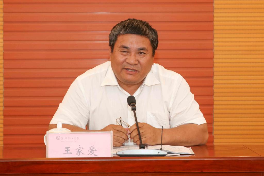 王家爱认真听取了参赛师生的发言,代表学院向获奖团队表示热烈祝贺并致以崇高的敬意,感谢获奖团队在国赛赛场上为学院、为山东争光。同时也对今后的国赛相关工作提出了三点意见:一是要重视国赛。国赛不仅政府重视、学校重视,更是家长、企业和社会的重视方面,是职业院校最高规格的大赛,对教与学的促进和引领作用巨大,是对职业院校育人质量的检验;二是要认真总结经验教训。在训练方法上要通过这次会议的交流,在今后的工作中相互借鉴、扬长避短,提高成绩。在指导教师和参赛选手选配上要补短板、强弱项,力争2020年的国赛取得更好成绩;三是要大力宣传国赛优异成绩和国赛背后的感人事迹,为学院师生树立标杆,营造比学赶超的国赛氛围。