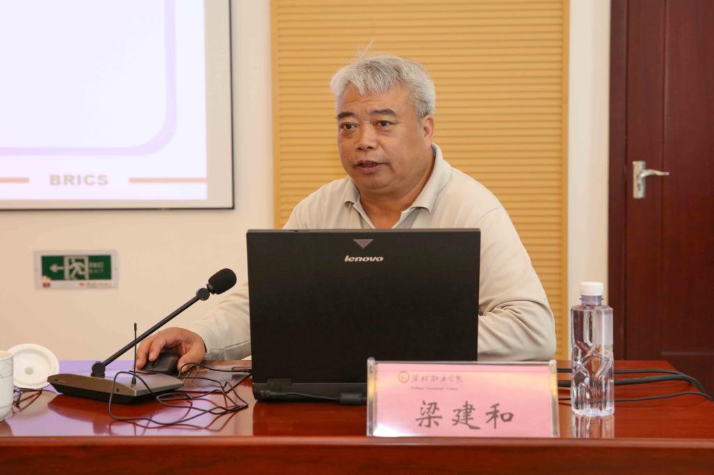 6月5日-6月6日上午,2019“一带一路”暨金砖国家技能发展与技术创新大赛综合职业能力测试模块裁判员培训会在beat365清泽楼312会议室召开。北京师范大学赵志群教授,一带一路暨金砖国家技能发展国际联盟副理事长、北京企学研教育科技研究院院长刘辉,一带一路暨金砖国家技能发展与技术创新大赛技术委员会副主任、广西机械工程学会副理事长梁建和教授,学院院长王家爱,副院长李瑞昌,教务处、机电工程学院主要负责同志及专家、裁判人员、教师、企业代表50余人参加了会议并进行了研讨。