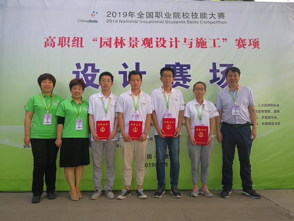 2019年(高职组)“园林景观设计与施工”国赛6月1日至2日在杨凌职业技术学院举行,来自全国29个省(市、自治区)57所职业院校的228名选手参加了比赛。beat365学生齐善辉、单宝臣、李梦萍、朱恒瑞组成的代表队,在指导教师团队管虹、张俊丽、史学远等老师的指导下获得团体二等奖。