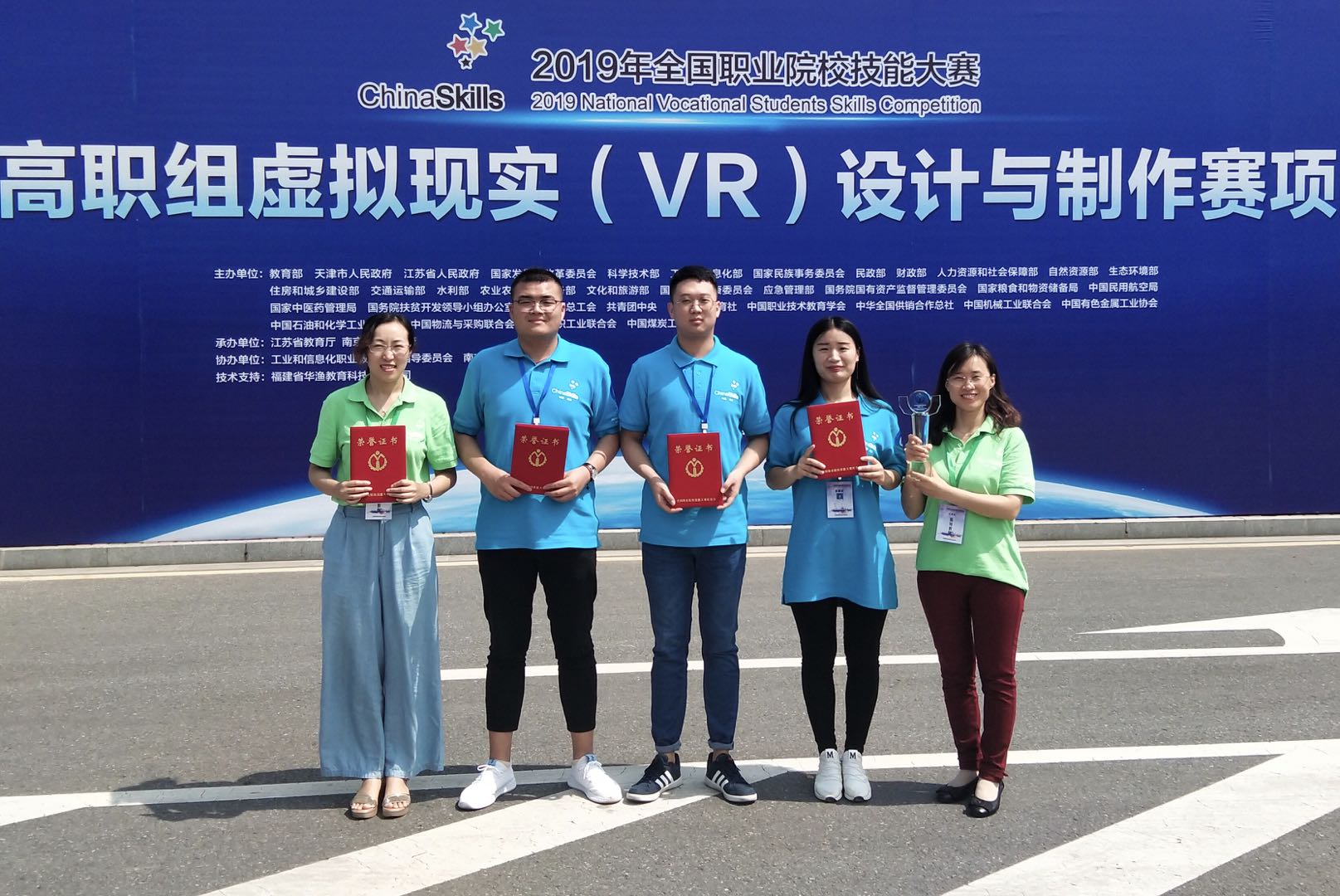 5月31日,2019年全国职业院校技能大赛高职组“虚拟现实(VR)设计与制作”赛项在南京信息职业技术学院举办,来自全国80个代表队参加角逐。beat365学生赵术涵、李浩、崔宁组成的代表队,在指导教师团队刘德强、朱丽兰、刘萍的指导下获得团体一等奖,指导教师刘德强、朱丽兰获“优秀指导教师奖”。