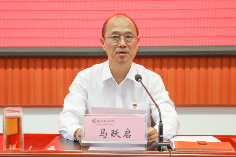 马跃启要求,全面落实新时代党的建设总要求,一要抓好政治理论学习,提高政治站位。认真履行党委管党治党主体责任和纪委监督责任,严格落实党委书记和各党支部书记“第一责任人”职责,形成层层抓落实的工作格局。二要抓好主题教育,牢记初心使命。认真开展“不忘初心、牢记使命”主题教育活动,全面从严治党推进学院高质量发展。三要抓好巡察整改,提高党建水平。严格落实学院党委巡察反馈整改方案,压实责任,确保整改到位。四要抓好工作落实,全力攻坚克难。心无旁骛干事业,聚精会神抓落实,全面开创学院事业发展新局面