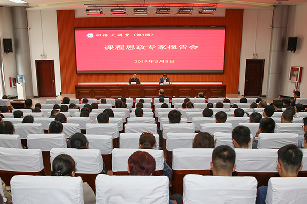 本次报告会标志着学院明德大讲堂正式启动,明德大讲堂将为思政教育经验交流、课程思政教学展示搭建平台。(臧学运 王辉供稿)