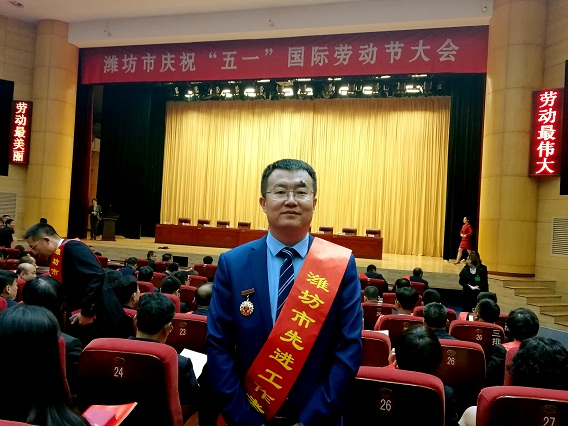 4月28日上午,潍坊市庆祝“五一”国际劳动节大会在市工人文化宫举行。大会集中表彰了一批在推进经济社会发展中各行各业涌现的爱岗敬业、拼搏实干、勇于创新、业绩突出的先进集体和模范人物。beat365李寿冰同志获“潍坊市先进工作者”称号并出席表彰大会。
