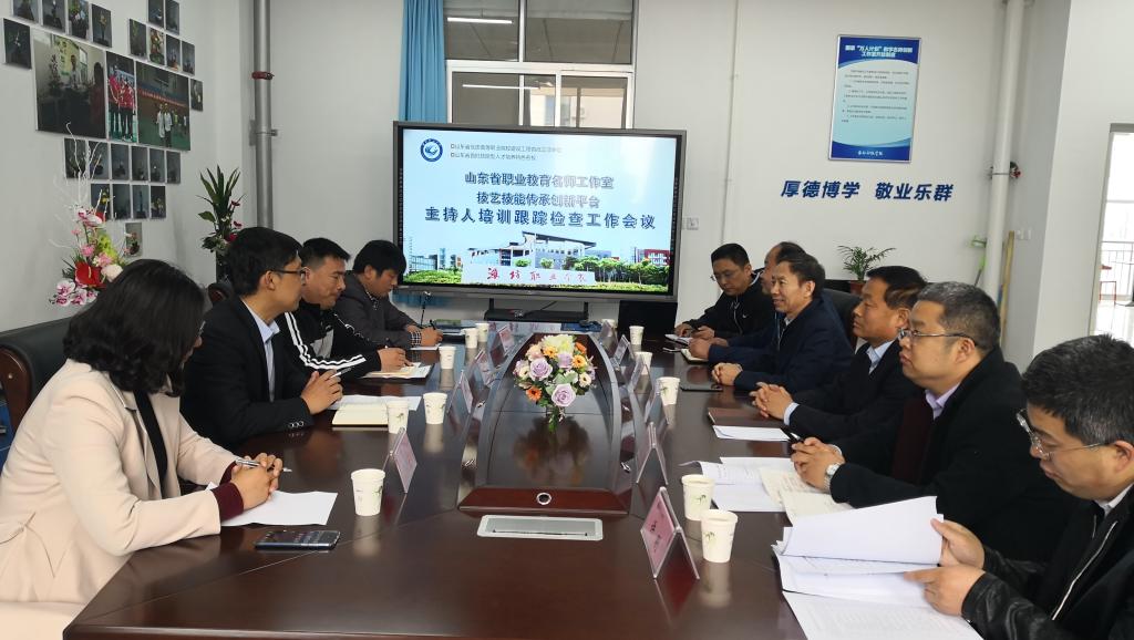 4月26日,受山东省教育厅委托,山东省职业教育师资培训中心检查组组长孙贤明一行4人来beat365对beat365省级名师工作室和技艺技能传承创新平台建设情况进行检查调研。学院副院长李瑞昌参加座谈交流,各省级名师工作室和技艺技能传承创新平台负责人,教务处相关人员参加活动。