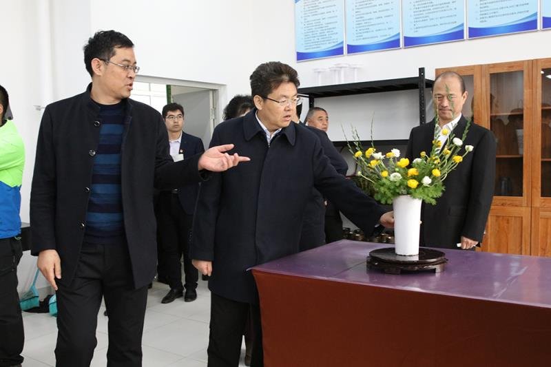 田庆盈一行参观了学院校史馆,观看了专题宣传片,实地查看了智能温室穴盘育苗现场教学、机电智能控制实训基地ABB工业机器人编程实训教学、无人机实训中心操控模拟教学、现代制造实训基地数控加工实训教学,汽车钣喷实训区和发动机理实一体化实训室,观看了花艺设计实训室插花艺术教学,饶有兴致地与师生亲切交谈,仔细询问了教学实训情况,提出教学中强化美术、书法、国画、音乐等知识传授,勉励大家可以把艺术插花推向市场。