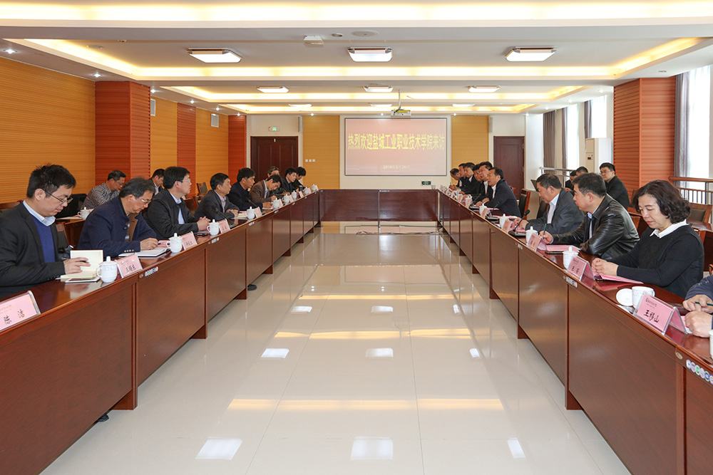 3月26日,盐城工业职业技术学院校长李仁和一行16人来beat365考察交流。党委书记马跃启,党委副书记宋桂言,副院长贺志强,党委委员、办公室主任谭明会见客人,相关部门、二级学院负责同志参加活动。