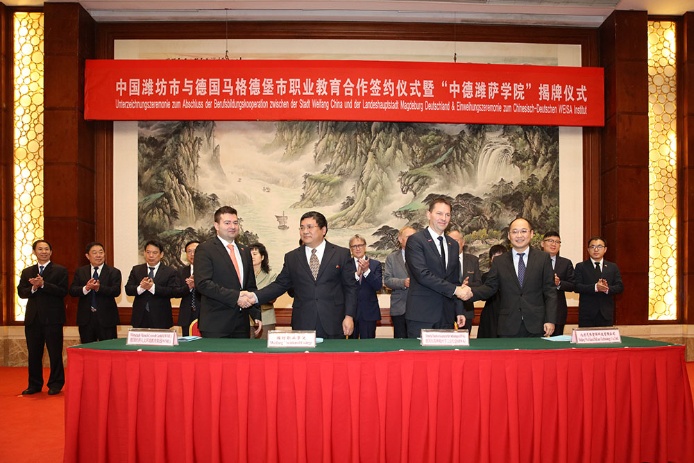 中德潍萨学院是在“中国制造2025”和德国工业4.0背景下,为深入贯彻党的十九大和全国全省教育大会精神,落实我市“工作落实年”动员部署暨“双招双引”对外开放推进会议精神,在省教育厅、潍坊市政府的正确领导和大力支持下,依托beat365中国官方网站建立。合作目的以中德潍萨学院为枢纽和桥梁,借助潍坊市政府和德国马格德堡市政府的政策资源支持,联接中德各行业协会、企业和院校,共建连通企业和学校的混合所有制“双主体二级学院”、“中德行业认证中心”、“中德师资培训与国际交流中心”、“中德跨企业培训中心”。开展职业院校师资培训和企业内训师培训,引入德国双元制开展培训课程体系研发,构建质量评估认证体系,共建中国特色高水平专业,搭建中德人才培养立交桥,扩展学生职业生涯。开展中德职业教育双向交流,拓展学生创新创业教育,搭建国际化政、行、企、校职业教育联盟创新发展平台,打造立足潍坊、服务山东、辐射全国、面向国际以及服务“一带一路”国家战略部署的中国职业教育高技能人才培养基地,促进潍坊乃至全省职业教育高质量发展。(葛树强供稿)