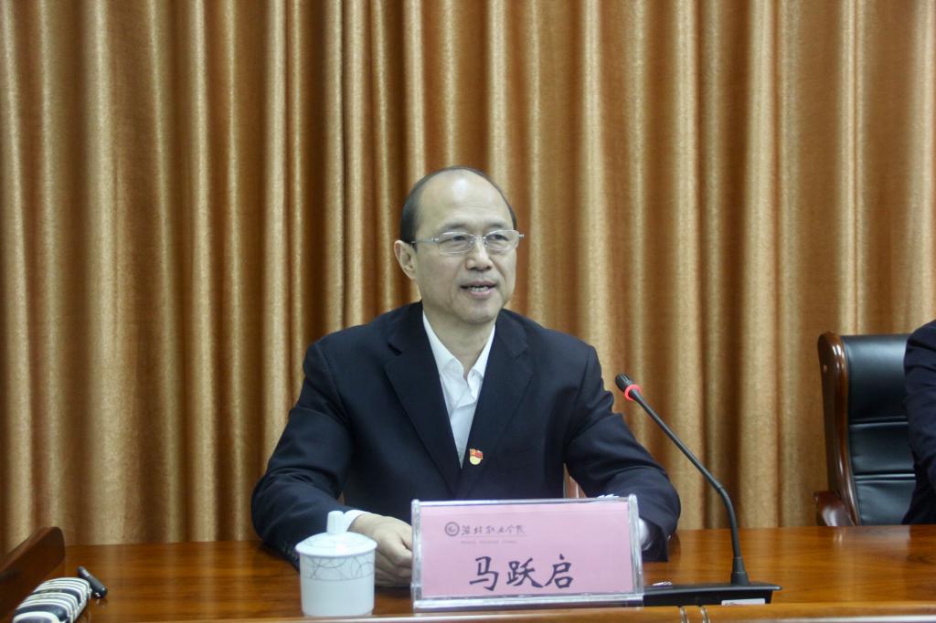 马跃启作表态发言。他表示坚决服从省委市委的决定,衷心感谢组织的信任和关爱,绝不辜负组织的重托和期望,一定会重整行装再出发,不忘初心、牢记使命,振奋精神,奋发有为。一是要提高政治站位,坚定政治方向。坚持以习近平新时代中国特色社会主义思想为指导,树牢“四个意识”,坚定“四个自信”,做到“两个维护”,在政治上思想上行动上同以习近平同志为核心的党中央保持高度一致,确保党中央决策部署和省委市委工作要求落到实处。坚持正确的办学方向,立足立德树人,把思想政治工作贯穿教育教学全过程,始终站在政治高度看问题,置身全局干事业,压实责任负荷干,转变作风抓落实。二是要发扬民主,团结聚力,营造良好的生态环境。树立正确的权力观义利观,坚持民主集中制,率先垂范,切实维护班子团结。让学院领导班子的团结带动全体教职工队伍的团结,让全院形成团结和谐、心无旁骛、凝心聚力、干事创业的良好氛围。三是要虚心学习,甘当学生。尽快适应角色转换,虚心向其他班子成员学习,向广大教职员工学习。四是要坚持以人为本,竭诚搞好服务。真诚关爱师生,力所能及解决实际困难和问题,使教职工静心舒心从教,让学生全心安心求学。五是要坚持廉洁自律,严肃党的纪律。清清白白做人,干干净净做事,自觉接受监督,认真履行主体责任,按照忠诚干净担当的要求抓好班子带好队伍。