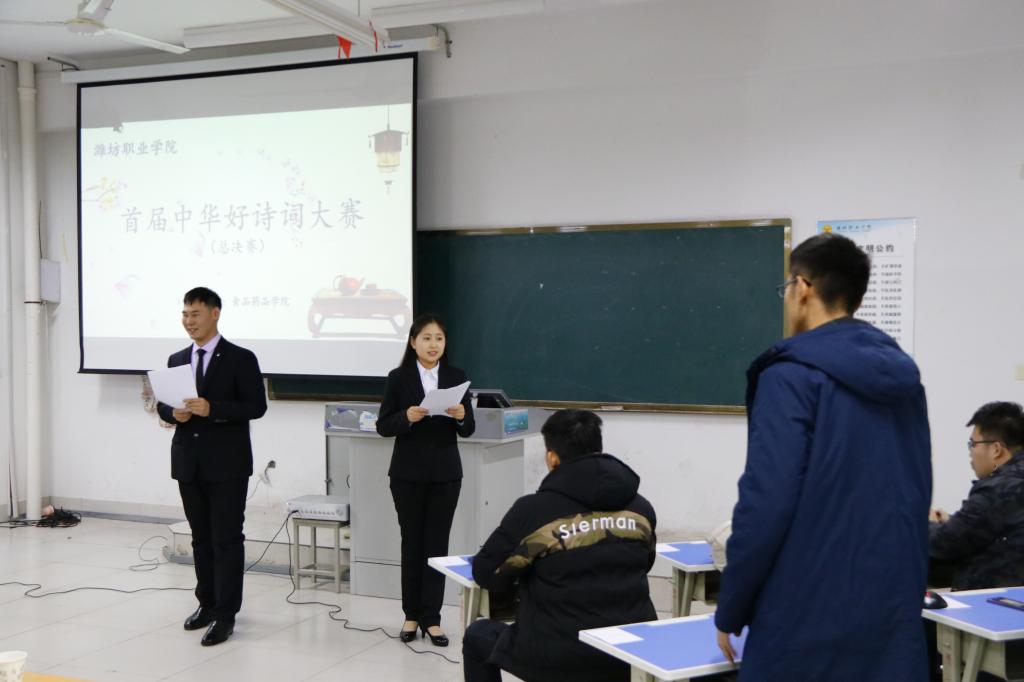 12月27日,由beat365中国官方网站诗词协会主办,食品药品学院团总支承办的beat365中国官方网站首届中华好诗词大赛总决赛在惠泽一号楼B区216举行。