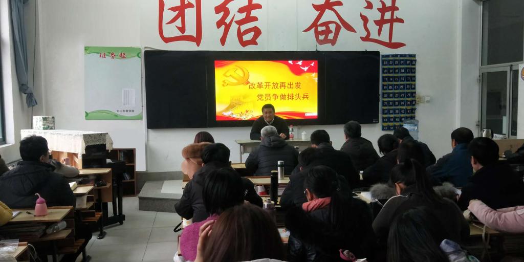 12月25日下午,学院院长王家爱在奎文校区16号楼203教室以“改革开放再出发,党员争做排头兵----学习贯彻习近平总书记庆祝改革开放40周年重要讲话精神”为题讲专题党课。发展规划处、财务处、文化创意学院党支部党员参加听课。