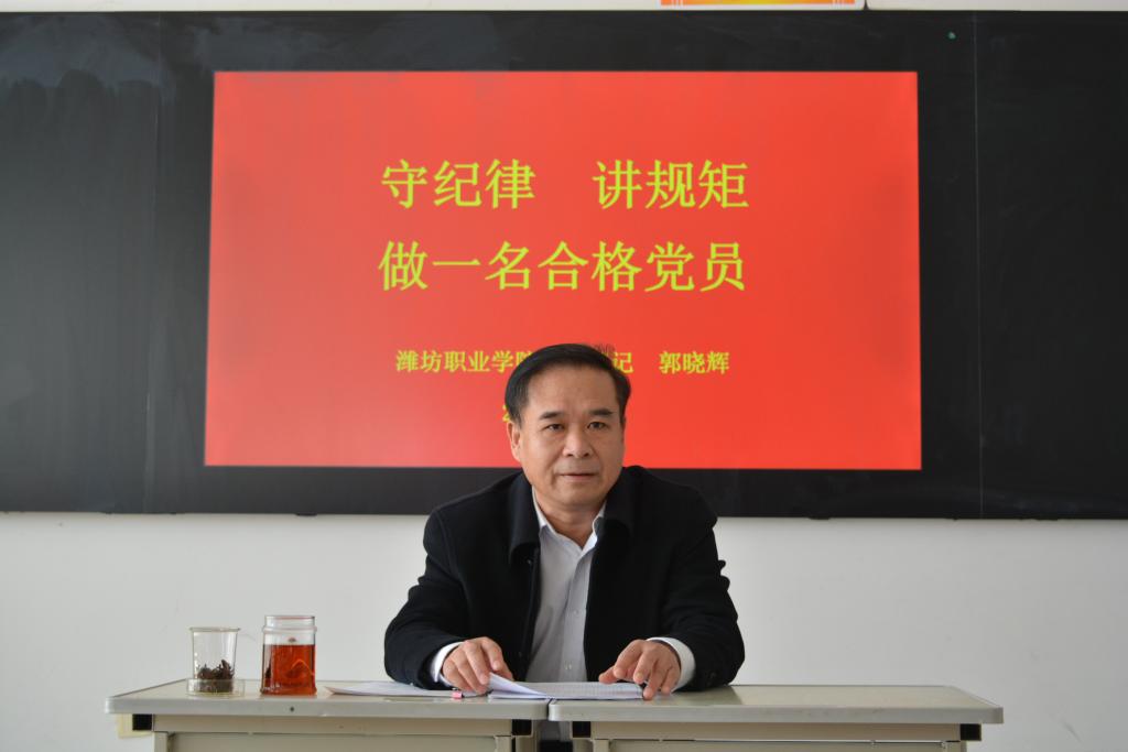 郭晓辉结合党史和党的纪律建设要求,论述了作为党员干部守纪律、讲规矩的重要性。他说,党的十八大以来,党中央全面加强党的纪律建设,严厉惩治腐败,坚决克服组织涣散、纪律松弛现象,维护了党的团结统一,增强了党的凝聚力和战斗力。同时也要看到,党内还存在一些无视党的纪律、破坏党的规矩现象,有的还相当严重。一些党员法纪意识、制度意识、规矩意识淡薄,顶风违纪、违反八项规定精神的问题时有发生。他要求全体党员特别是党员领导干部要牢固树立起纪律意识和规矩意识,坚决做到政治信仰不变、政治立场不移、政治方向不偏,在政治上讲忠诚、组织上讲服从、行动上讲纪律,坚决维护党的团结统一,坚定不移与党中央保持高度一致。他还结合国内外的一些事例,阐述了一个执政党,如果没有了规矩,就会丧失战斗力,就会失去民心,得不到群众的拥护和支持,就会失去执政地位,国家也会丧失凝聚力,存在亡党亡国的危险,因此必须讲规矩有纪律。