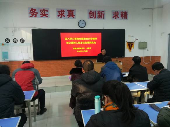 为深入学习贯彻全国教育大会精神,12月6日下午,党委副书记宋桂言在惠泽2号楼讲《深入学习贯彻全国教育大会精神把立德树人根本任务落到实处》专题党课。组织人事处、安全保卫处、团委、学生工作处、基建处、机电工程学院党支部党员参加听课。