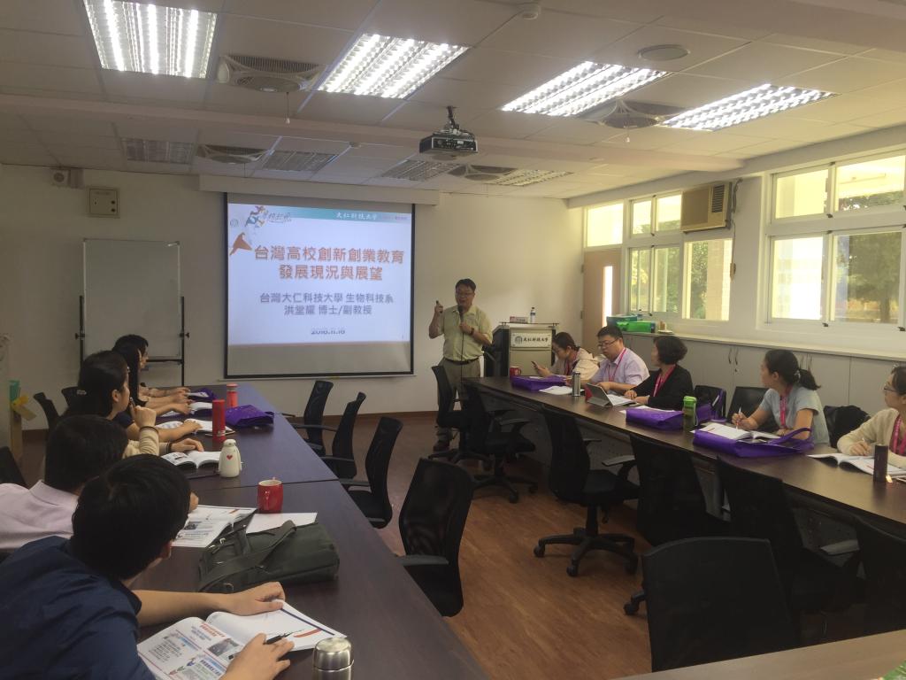 研修期间,按照培训课程安排,分别听取了台湾职业教育的发展、激发大学生创意思考——创新产业与专业结合、课程开发——三创五力、教学翻转与创新、台湾高校创新创业教育发展现状与展望、横向整合专业推动教师科研创新与成果转化、创新创意工程研发、心灵沟通——种子盆栽在生活中的应用、EV3乐高机器人、咖啡与人际关系等专题课程。参观了大仁科技大学素质拓展中心、体育场馆、图书馆、休闲及运动发展中心、药护实训基地等实习实训场所及学生活动场所,详细了解大仁科技大学的办学情况,并与教学管理人员、专业教师就教学管理、学生管理、教师培养、课程开发、创新创业、校企合作等进行了深入地交流。本次培训班的授课专家,均为大仁科技大学的优秀教师及管理人员,他们职教理念先进,专业精深,治学严谨,给学员留下了深刻的印象。