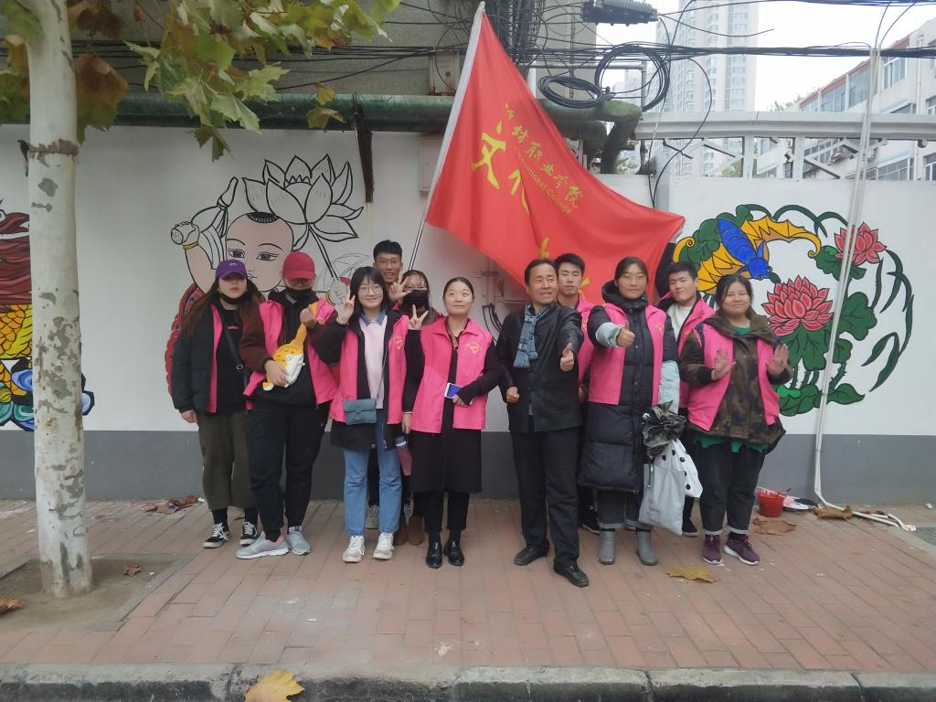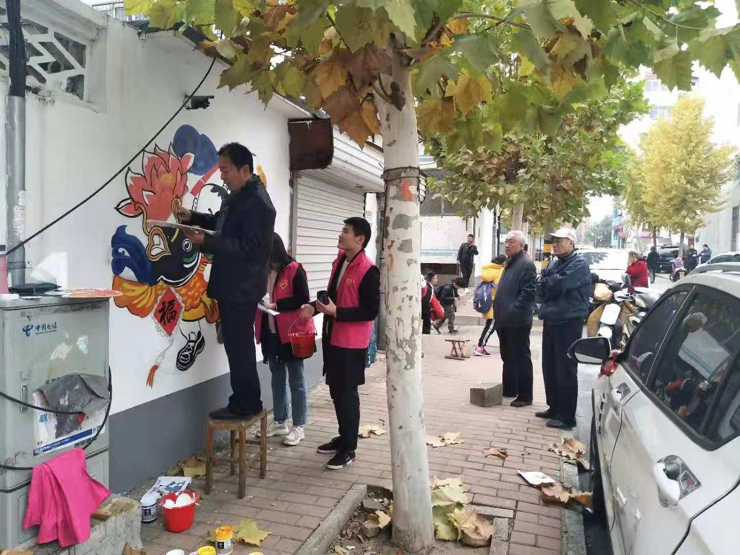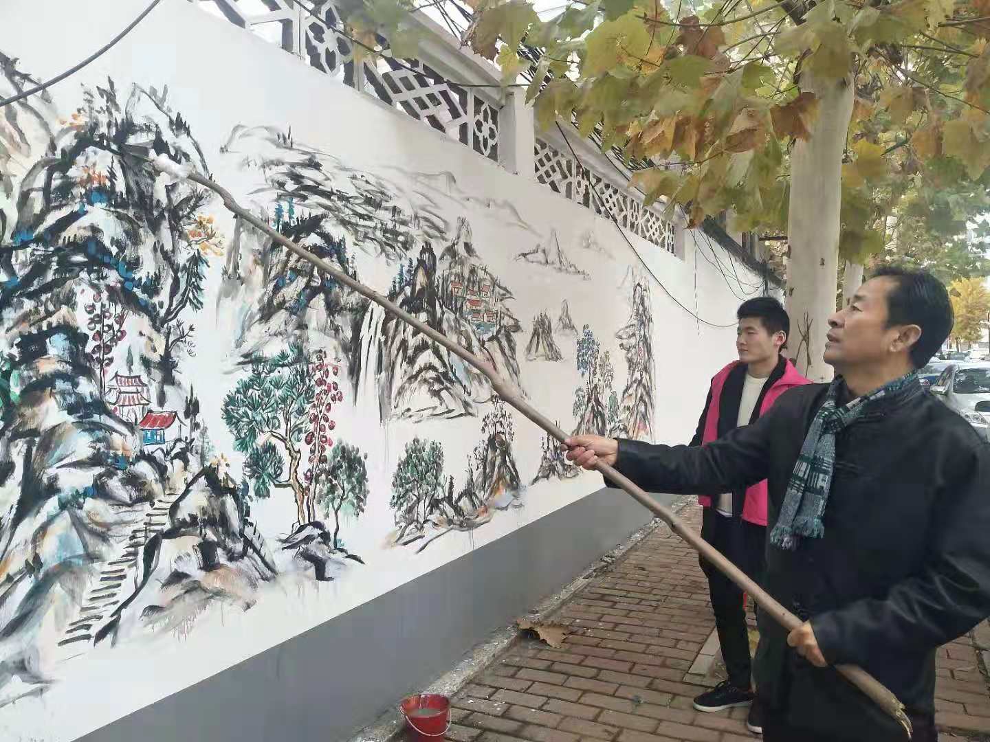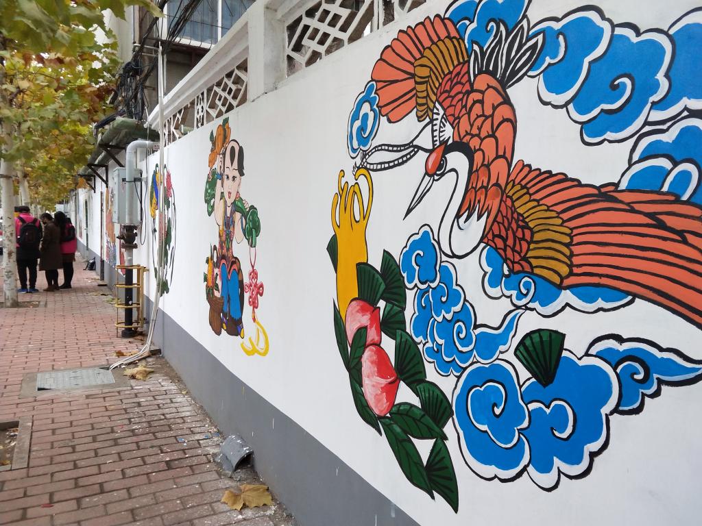 寒风吹落叶,笔墨皆是情。无论北风呼啸,还是阴雨连绵,师生们绘画时都一丝不苟,精益求精。他们精湛的绘画技艺和忘我工作的敬业精神,在80多米的社区院墙前,站成了社区一道亮丽的风景。原先一道道普通的院墙,在师生们的精心装点下成了传播文化的新阵地,浓浓的正能量让社区居民拍手称赞,吸引大批了社区居民驻足欣赏。