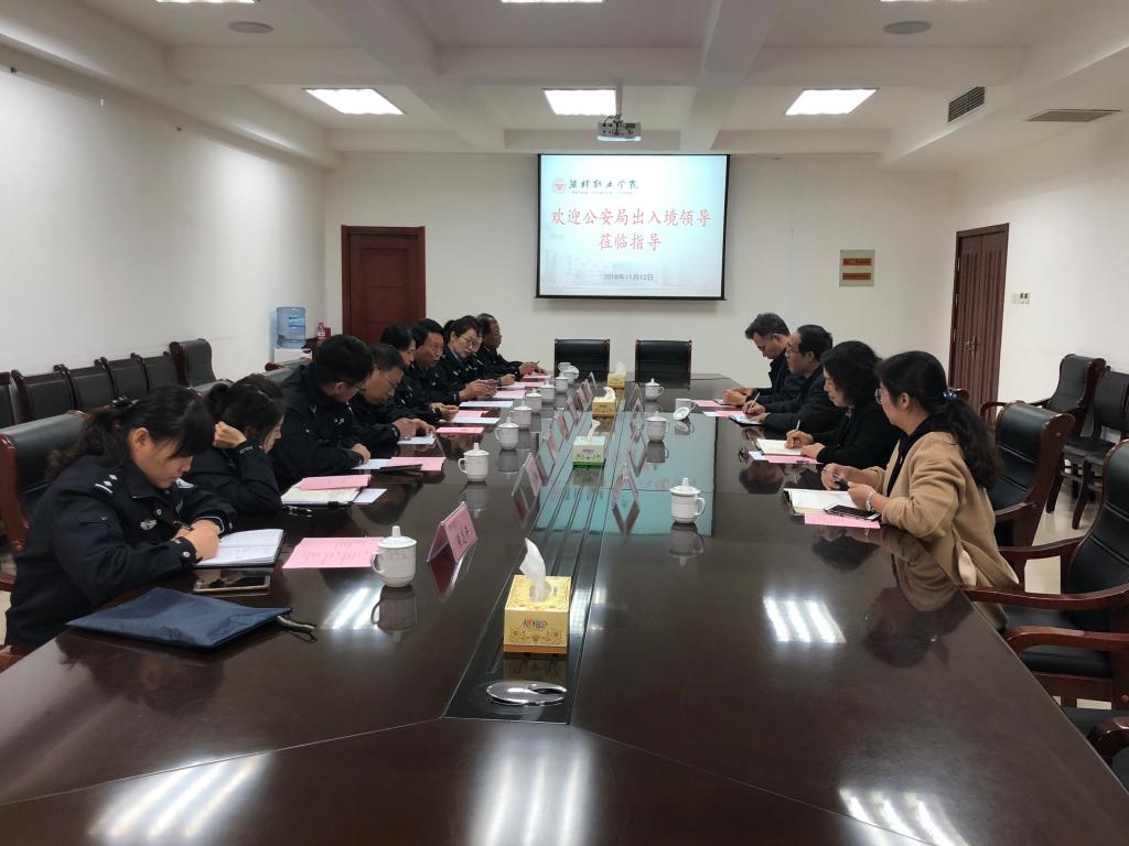 11月12日下午,潍坊市公安局出入境管理支队政委段华、奎文区公安局治安大队大队长张同雷、大虞派出所所长高继东等一行7人来beat365对外国留学生管理工作进行指导,重点就在beat365成立留学生管理服务站项目进行接洽交流。学院副院长赵君堂在奎文校区接待了客人,国际交流与合作处负责人及相关同志参加了座谈。
