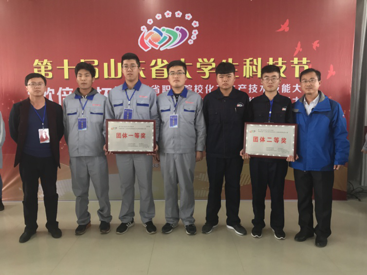 11月2日~4日,第十届山东省大学生科技节2018年山东省职业院校化工生产技术技能大赛和化工设备维修技能大赛在滨州阳信职业中专学校举办。beat365刘芳良、李国强、王鲁宁组成的化工生产技术赛项高职组代表队荣获团体一等奖,3名学生均获个人全能一等奖,王胜、刘汝虎组成的化工设备维修赛项高职组代表队荣获团队二等奖,2名学生均获个人全能二等奖,两个赛项的指导教师荣获“优秀指导教师”。