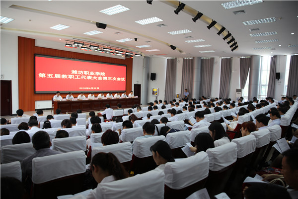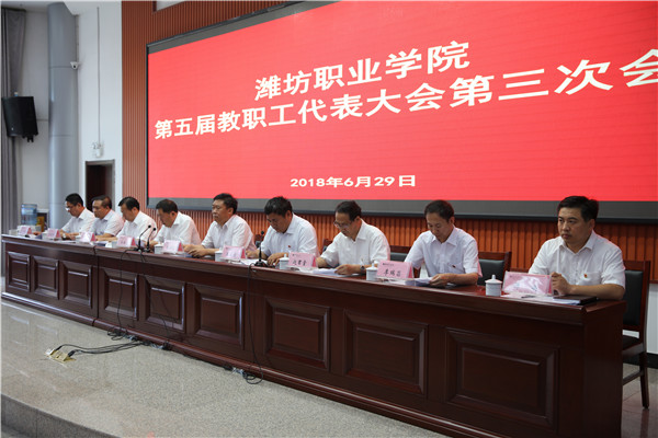 6月29日,beat365中国官方网站第五届教职工代表大会第三次会议在滨海校区清泽楼报告厅召开。学院党委书记张洪全,院长王家爱,党委副书记宋桂言,副院长赵君堂、贺志强、李瑞昌,纪委书记郭晓辉,党委委员、办公室主任谭明,工会主席王剑波等大会主席团成员出席大会并在主席台就座。大会正式代表252人参加了会议。开幕式由王家爱主持。