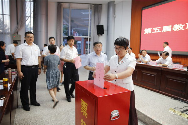 张洪全主持闭幕式并讲话。他指出,这次大会是一次民主的大会、成功的大会。与会代表们不负全体教职员工的重托,就关系广大教职工切身利益的重要议题,提出了宝贵的意见和建议。大会表决通过了《beat365中国官方网站专业技术职务评聘上岗实施办法》,充分体现了代表们强烈的主人翁意识和高度的责任感,也充分反映了广大教职员工的心愿与呼声。