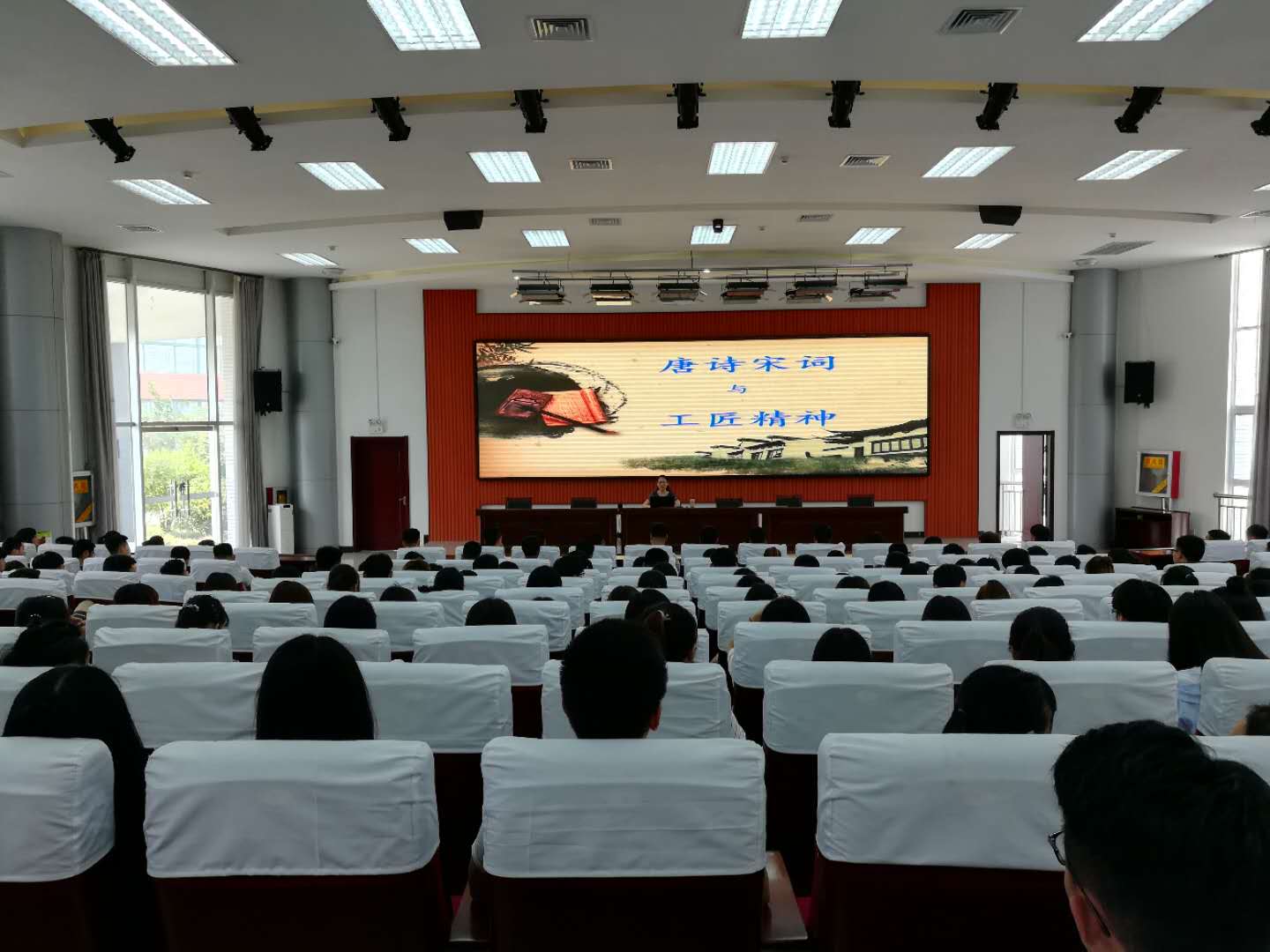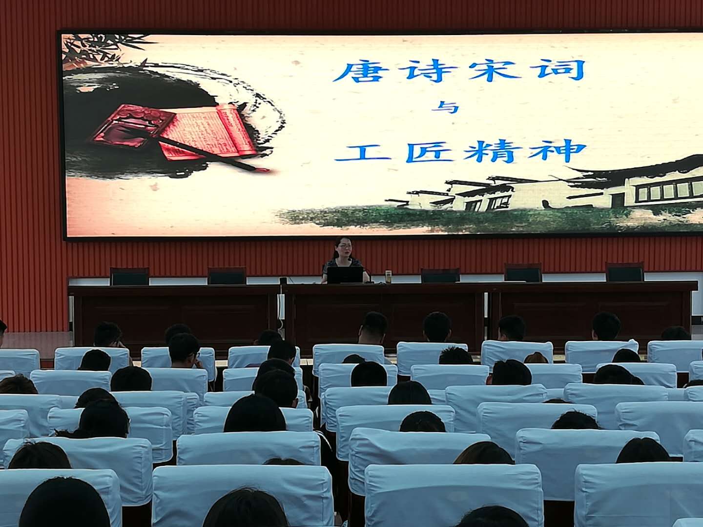 唐诗宋词,是中国文学史上最绚丽的篇章,报告开始,主讲人首先带领同学们展开了一场诗词之旅,重温了历久弥新的经典诗句,“黄鹤一去不复返,白云千载空悠悠”“无边落木萧萧下,不尽长江滚滚来”,“欲穷千里目,更上一层楼”“海内存知己,天涯若比邻”……在悠扬婉转的吟诵声里,同学们陶醉在了优美的意境之中,真切领略到了唐诗的繁盛热烈和宋词的高雅内敛,感受到了流传千古的家国情怀;主讲人进而以独特的视角深刻剖析了唐诗宋词的文学价值和思想价值,通过分析诗词中蕴含的爱国主义情怀和社会责任感阐述了工匠精神的内涵,并从“学习与思辨、选择与坚守、担当与创新”三种能力的提升倡导同学们要乐于学习、善于沉淀、勇于开拓,最终达到精益求精、追求极致的境界。报告借助唐诗宋词所传递出的人们追求独特和完美、提倡文化和传承、崇敬职业和标准的生活态度和人生价值观对于当代学生有着重大的启发意义。