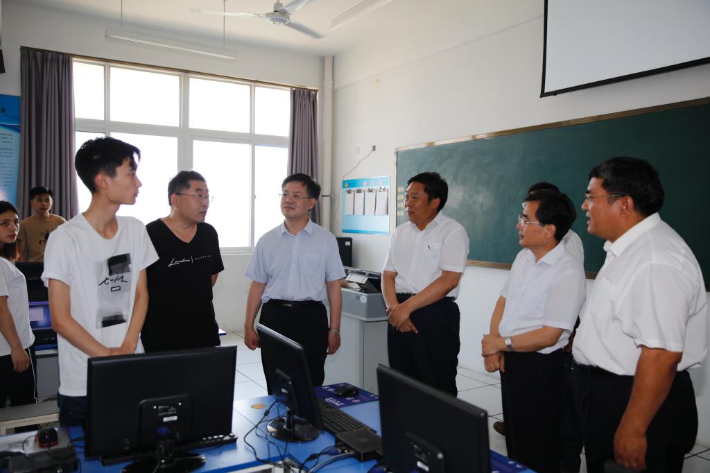 6月20日下午,省委教育工委委员、省教育厅副厅长白皓、职教处处长梁斌言一行来beat365调研工作,潍坊市教育局局长徐友礼,高等教育办公室副主任李广敬等同志陪同,学院党委书记张洪全,院长王家爱,副院长李瑞昌,党委委员、办公室主任谭明参加调研,办公室、教务处、信息工程学院等相关部门负责人参加了调研。