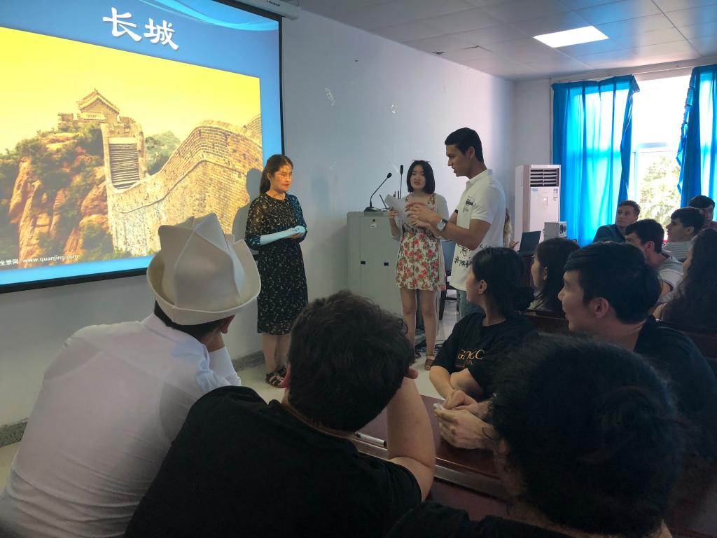 本次风采大赛准备充分、形式新颖、气氛活跃。大赛由来自哈萨克斯坦、吉尔吉斯斯坦、塔吉克斯坦、加蓬、埃塞俄比亚等国家的50余名留学生和国际教育学院老师们共同参与,分四个参赛队伍和四个环节举行。比赛第一个环节通过观看视频题目,考察留学生们对中国文化的了解程度,同学们对“入乡随俗”“谈谈你对长城的了解”“你知道现任中国国家主席是谁”等问题的回答妙语连珠,精彩纷呈,引来师生们的阵阵喝彩。小组采访“你认为什么是幸福”的视频展示环节,小组成员集思广益、各司其职,团结协作,通过走上街头、诊所、街舞社、潍坊普通百姓家的方式了解了中国人的幸福观。视频剪辑录制十分精彩,得到评委老师和观众们的一致好评。