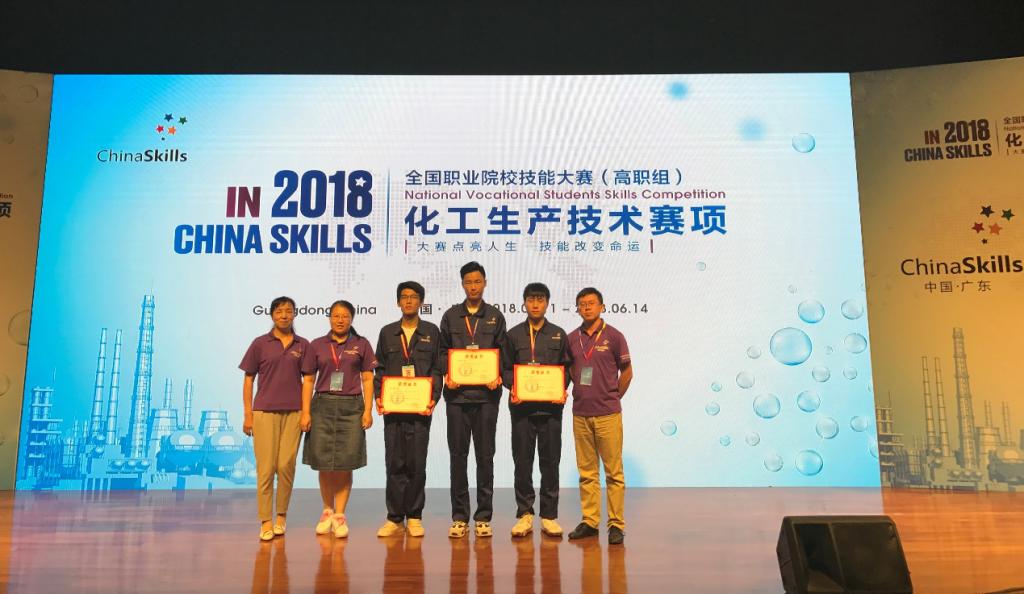 6月11日至14日,2018年全国职业院校技能大赛高职组“化工生产技术”赛项在广东佛山举行,由beat365李晓波、王钦、郑万杰3名学生组成的代表队获得二等奖。
