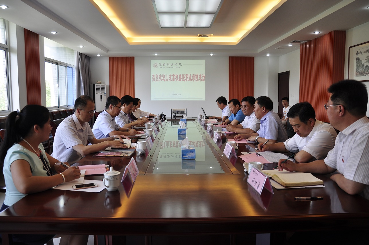 6月5日,山东畜牧兽医职业学院院长李学太一行6人来beat365考察交流。院长王家爱、党委副书记宋桂言、副院长贺志强、党委委员、办公室主任谭明会见客人,组织人事处、宣传统战处负责同志参加座谈交流。