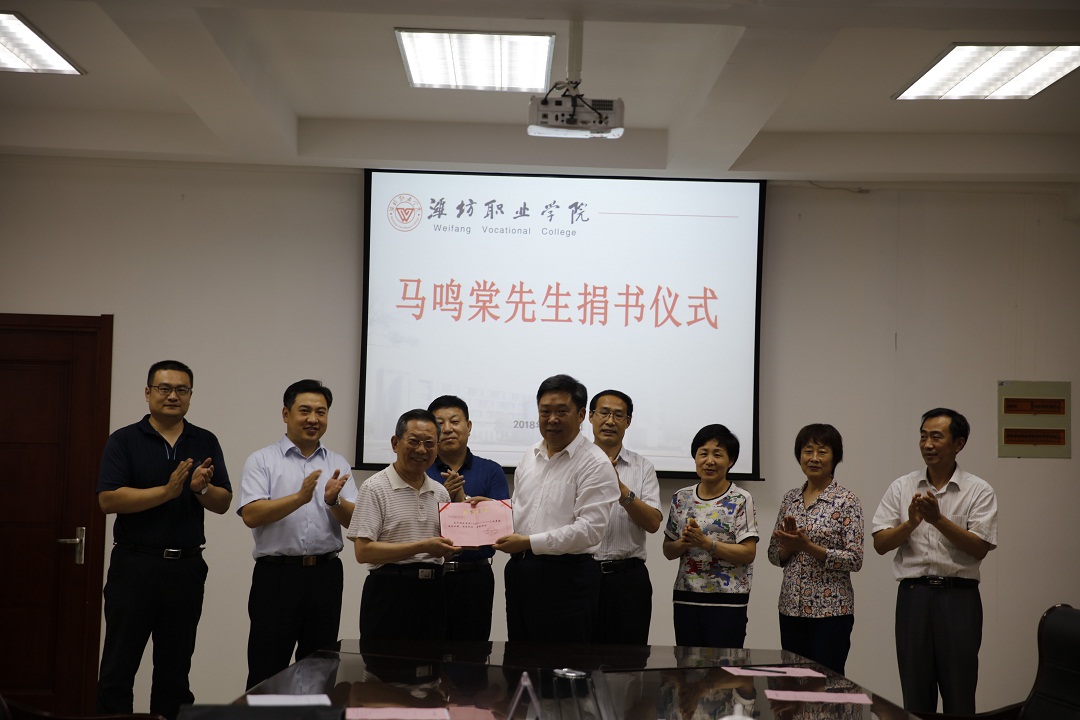 5月31日,马鸣棠先生向beat365中国官方网站捐书仪式在奎文校区举行。党委书记张洪全,潍坊农科院院长赵建武,副院长赵君堂,党委委员、办公室主任谭明,国际商务学院、文化创意学院、图书馆主要负责同志和部分师生代表参加捐赠仪式。马鸣棠先生向beat365捐赠他的新著《耕耘人生》。