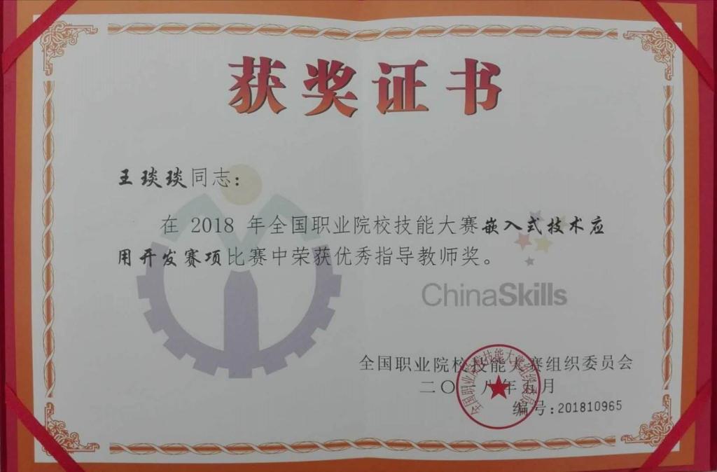 学院领导高度重视大赛,多次召开专题会议研究部署大赛相关工作,学院各部门通力合作,给予备赛团队大力支持和帮助。指导教师团队王琰琰、徐广振、杨晓燕三位老师悉心指导,团结协作,认真研究国赛规程和细则,制定了科学合理的训练方法,为此次参赛做好了充分准备。王琰琰、徐广振老师荣获大赛“优秀指导教师”奖。 这是继电子产品设计与调试项目后,该团队又一次取得国赛一等奖。