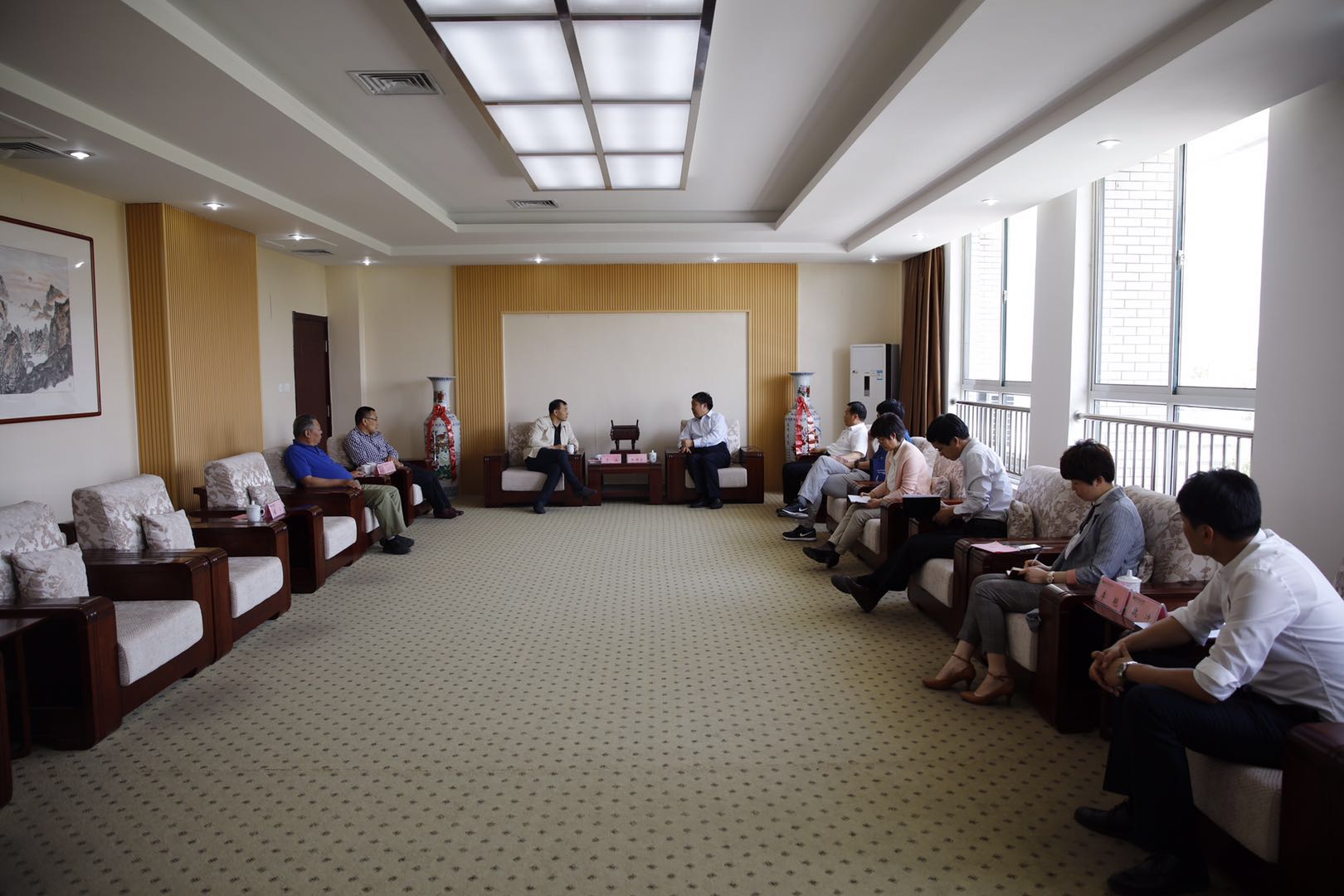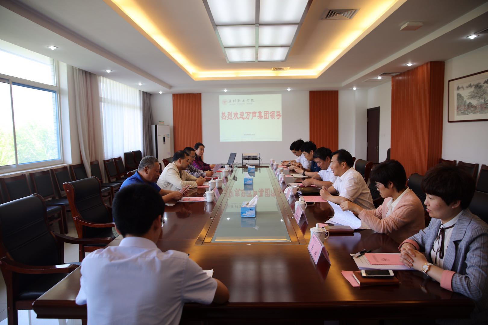 5月23日,现代服务业学院2018年度理事会会议在学院滨海校区召开。万声集团董事长于江、总经理助理汤志强、信息产业有限公司总经理孙国松、人力资源服务中心总经理谭宁出席会议。学院党委书记张洪全会见于江一行。院长王家爱,副院长贺志强出席会议,教务处、招生就业处、科技处(产学研合作中心)、信息工程学院、经营管理学院负责同志参加座谈。贺志强主持会议。
