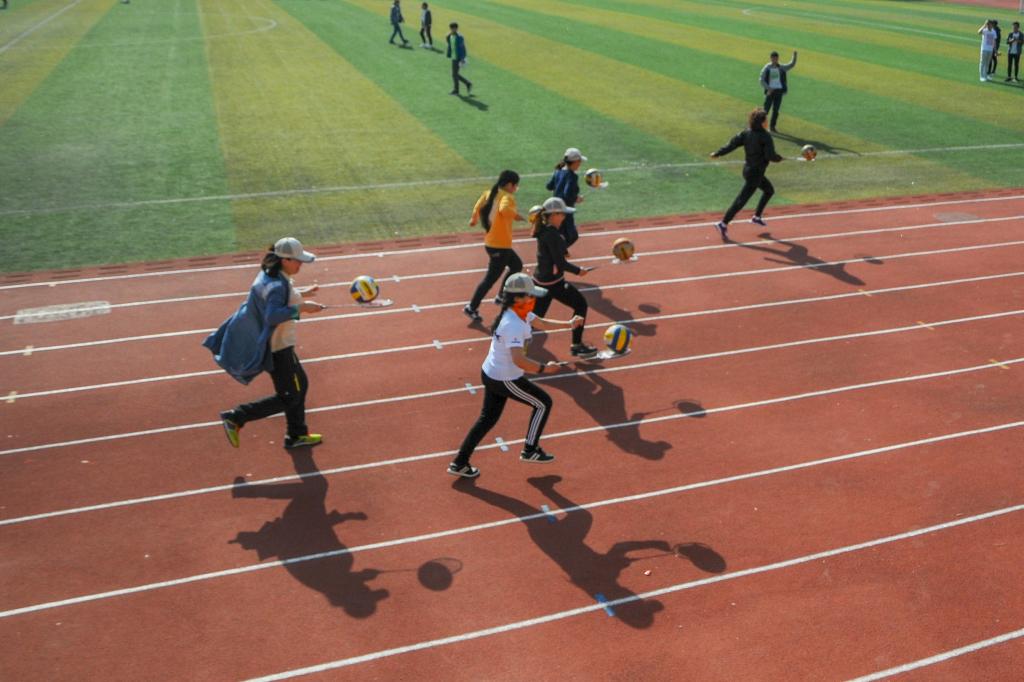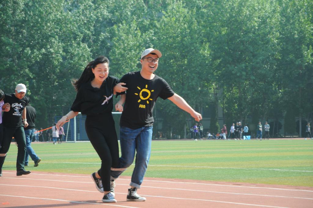 本次运动会比赛项目设置遵循师生共同参与、竞技与趣味相结合的原则,既有展现师生个人风采的项目,又有考验师生配合的二人三足、100米混合接力项目;既有短跑、长跑、跳高、跳远、铅球、接力等传统田径项目,又有跳绳、二人三足、沙包掷准、实心球掷远、定点投篮、足球射门等趣味性运动项目。运动场上,运动项目的挑战性和趣味性激发了全体师生参与的热情与兴致,掌声、笑声、助威声此起彼伏。