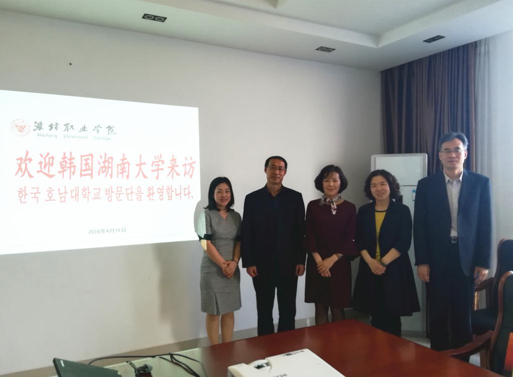 4月19至20日,韩国湖南大学国际交流本部长孙皖怡一行2人到beat365访问,学院副院长赵君堂,国际交流与合作处相关负责同志接待了客人。