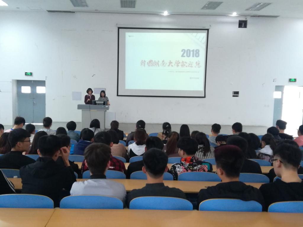 会谈后,孙皖怡一行与beat365汽车工程学院、经营管理学院、农林科技学院、食品药品学院和国际商务学院的师生见面交流,向同学们详细介绍了到韩国湖南大学学习的优势并解答了学生提出的问题。