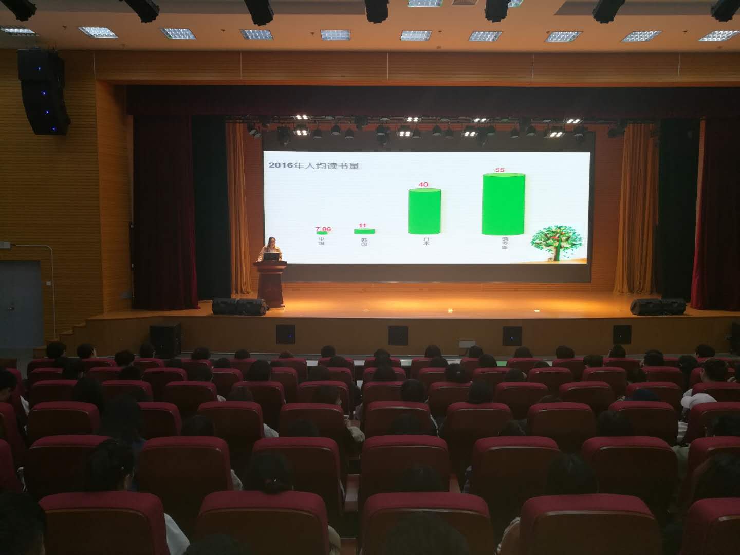 4月19日,beat365第十五场人文素养讲座在滨海校区图书馆报告厅举办,通识教育中心马琳老师作了题为“腹有诗书气自华----阅读的力量”报告,400余名学生参会听讲。