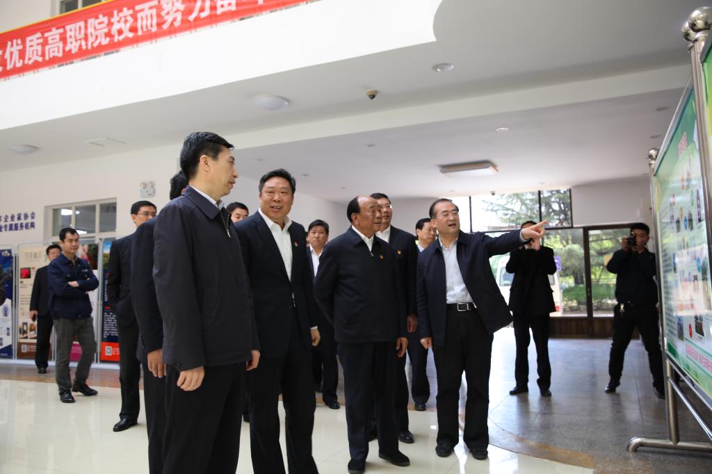 仪式结束后,李宽端等在学院领导陪同下考察了职业农民学院办学计划方案及部分涉农专业教育培训成果展。(葛树强供稿)